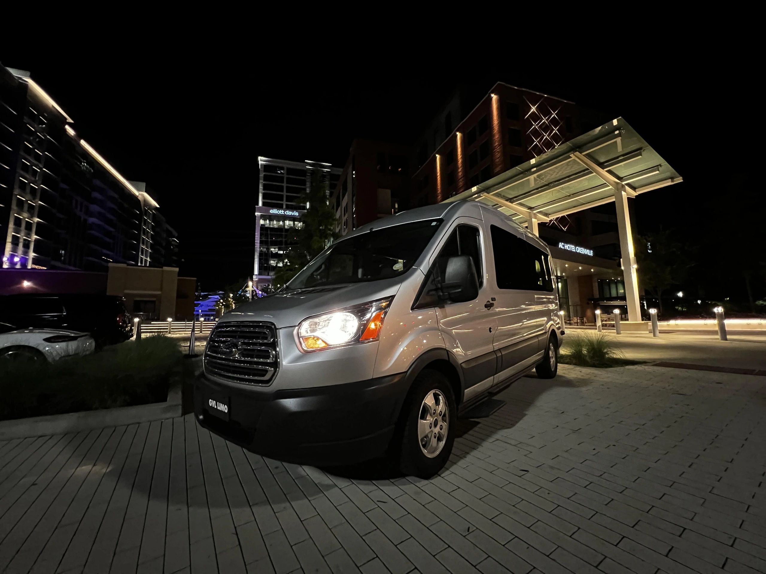 Have a corporate event, wedding, going to a concert, or just need to move up to 14 people? Book our new addition to the fleet, our 14 Passenger Transit Van! That silver with the black interior really pops! Equipped with a large flat screen TV, this vehicle is versatile for any group!